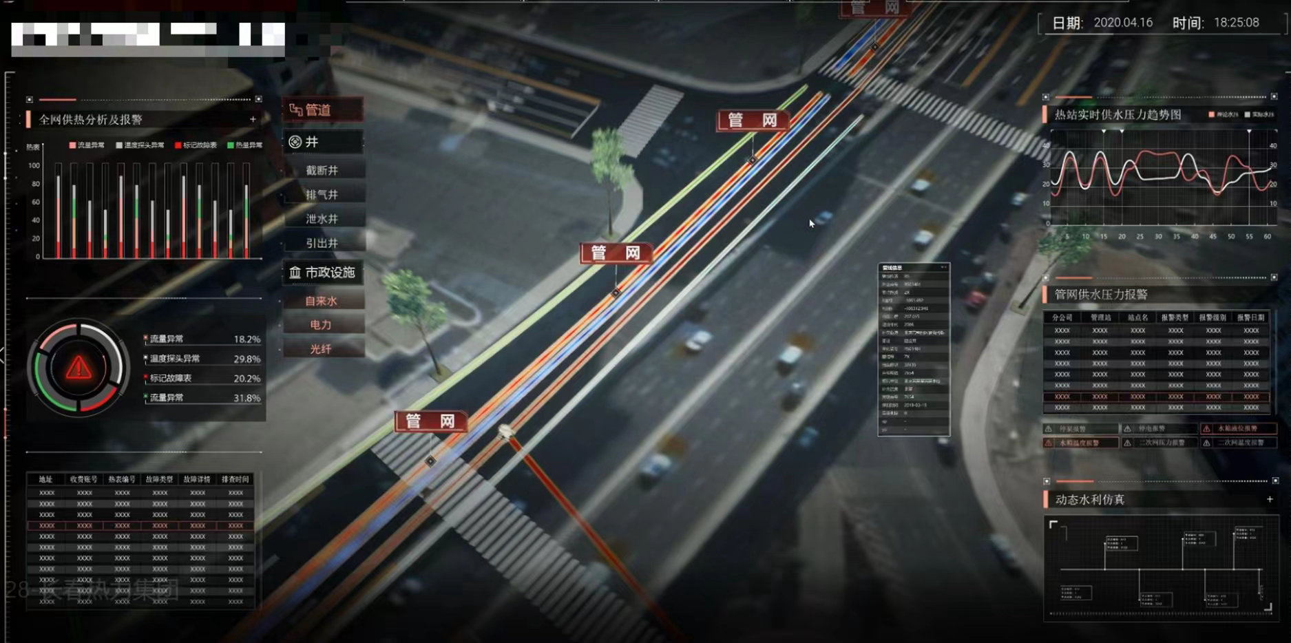 祝融科技的QuickCIM城市數(shù)字孿生基座平臺(tái),采用先進(jìn)的數(shù)字孿生技術(shù),全面構(gòu)建城市地下管線數(shù)字孿生管控平臺(tái),就能夠?qū)┧鹊叵鹿芫€進(jìn)行全流程智慧化管控體系,有效控制施工意外破壞管線事故的頻繁發(fā)生。