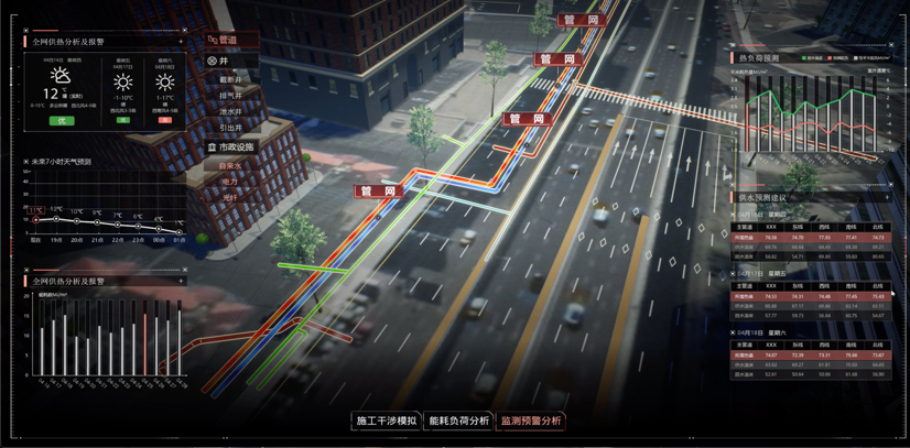 通過地面物探、無人機測繪、工程施工數據、設計圖紙等方式結合,建立供熱管網的數字孿生化對象庫,實現對管網、熱力站、補水泵/換熱器/循環(huán)泵等設備的三維數據化、可視化、規(guī)范化和網絡化管理,實現數據融合共享;